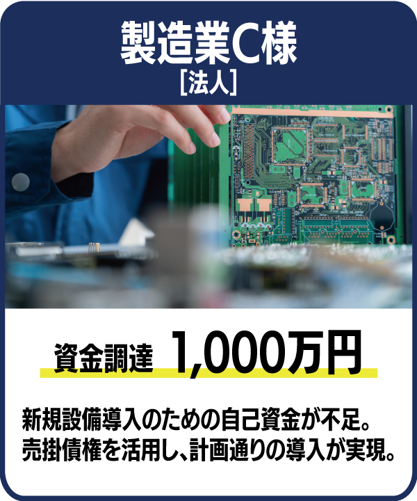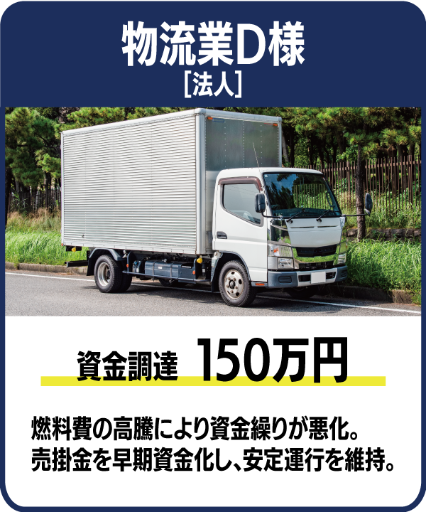 あらゆる業種の方にご利用いただいております。建設業、運送業、IT業、介護業など、売掛金の発生が多い業種のご利用が多くございます。