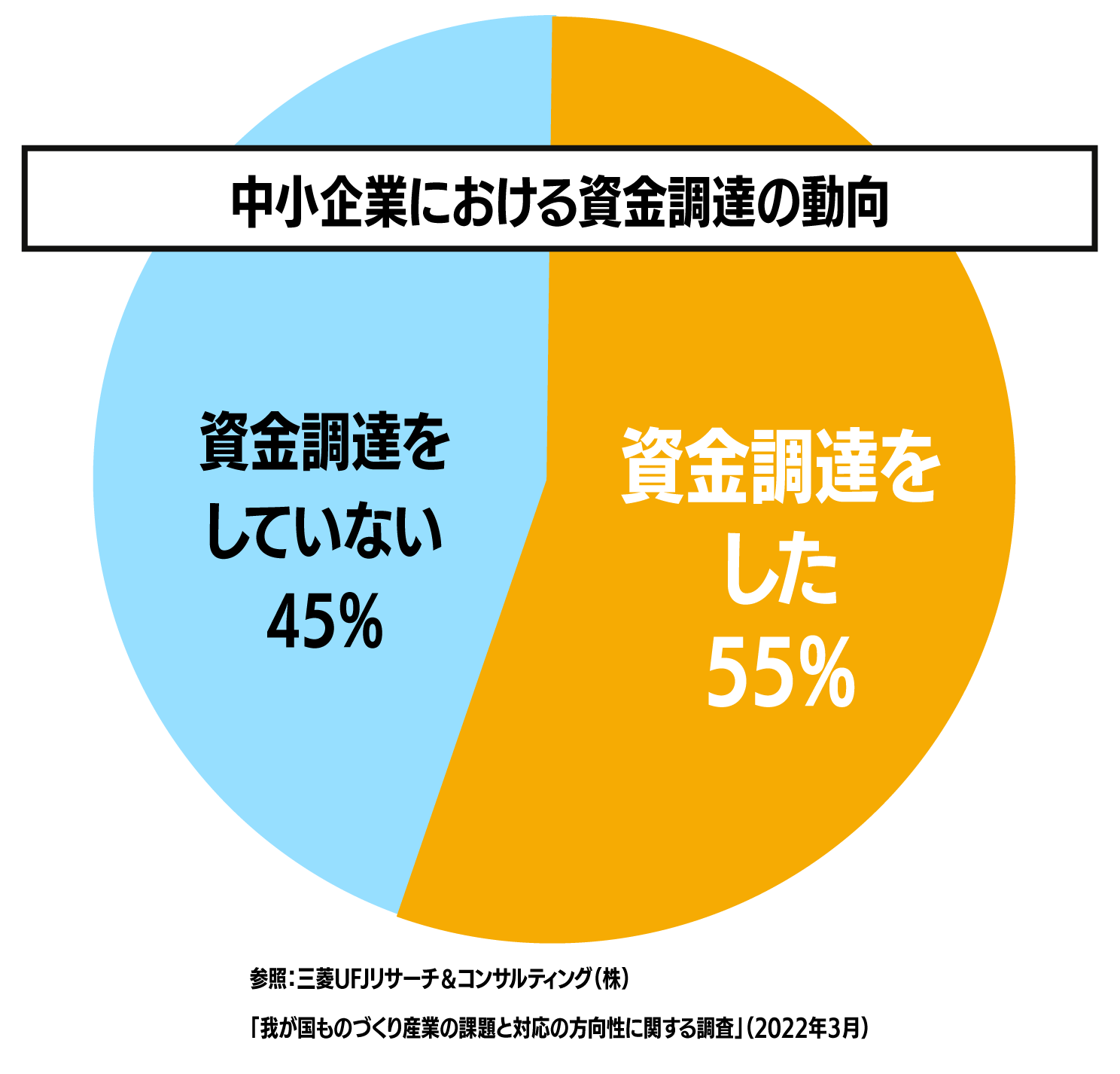 経済産業省の調査によると、中小企業の約半数がこの数年で資金調達を行っています。